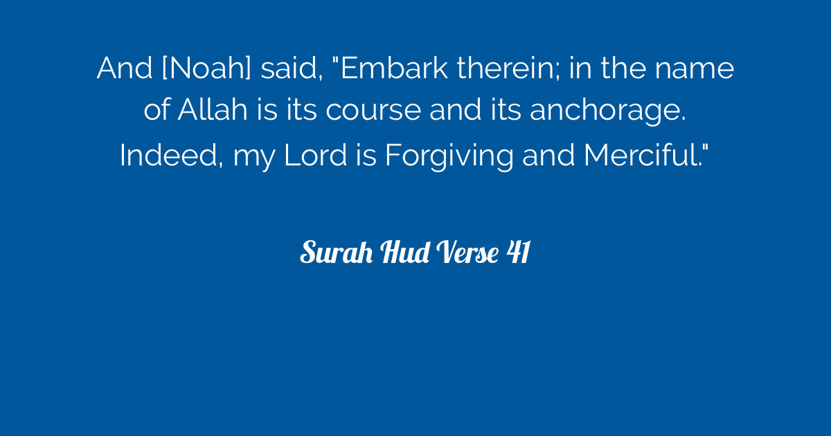 Related : Surah Hud Ayat 41 : Wa qoolar kabuu fiihaa bismil laahi majraihaa wa mursaahaa;.