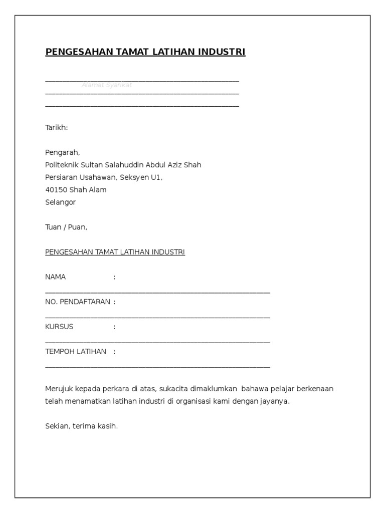 Related : Contoh Surat Permohonan Praktikal : Contoh Surat Permohonan Latihan Industri Praktikal Mysemakan / Contoh surat permohonan siup surat 31..